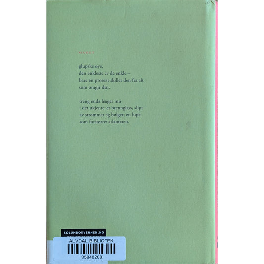 Et utvalg med diktsamlinger og annen lyrikk, samt noveller og antologier. Halldis Moren Vesaas, Tarjei Vesaas, André Bjerke, Ernst Orvil, Jan Magnus Bruheim, Rolf Jacobsen, Inger Hagerup og mange flere. Primært norske utgaver. Brukte bøker hos Inventaret.