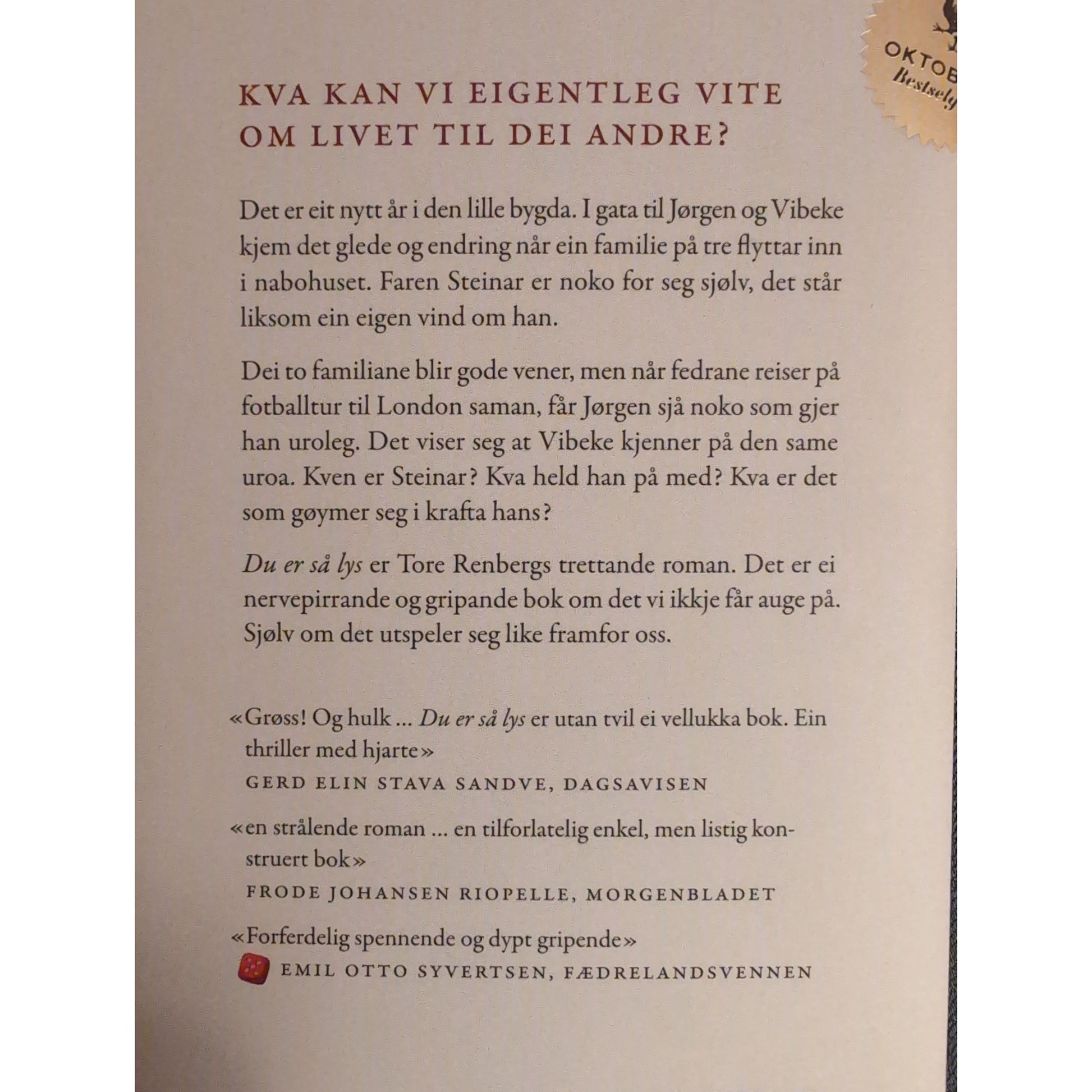 Renberg, Tore: Du er så lys