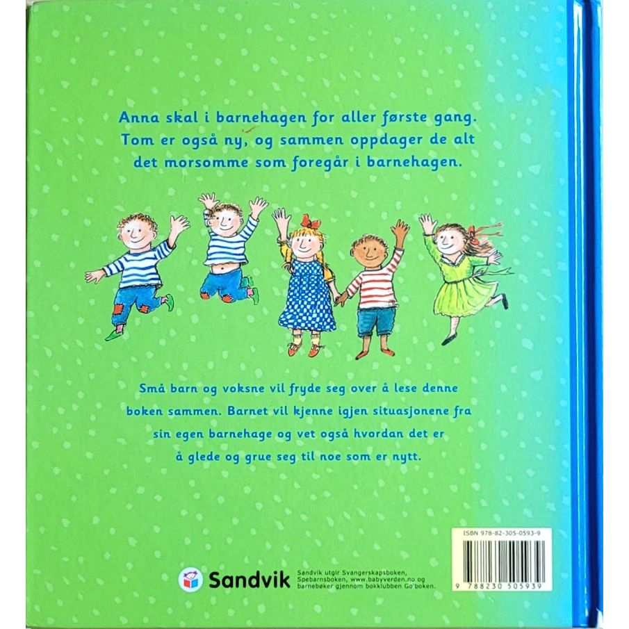 Anna skal i barnehagen for aller første gang. Tom er også ny, og sammen oppdager de alt det morsomme som foregår i barnehagen.