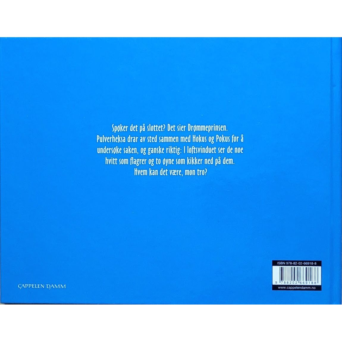 Spøker det på slottet? Det sier Drømmeprinsen. Pulverheksa drar av sted sammen med Hokus og Pokus for å undersøke saken, og ganske riktig: I loftsvinduet ser de noe hvitt som flagrer og to øyne som kikker ned på dem. Hvem kan det være, mon tro?