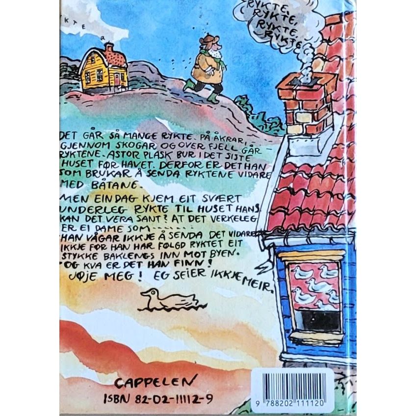 DET GAR SÅ MANGE RYKTE. PÅ AKRAR, GJENNOM SKOGAR OG OVER FJELL GAR RYKTENE. ASTOR PLASK BUR I DET SISTE HUSET FØR HAVET. DERFOR ER DET HAN SOM BRUKAR Å SENDA RYKTENE VIDARE MED BÅTANE.